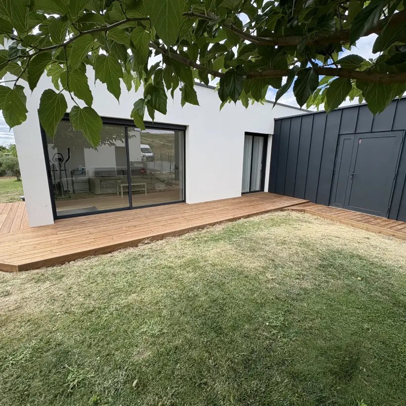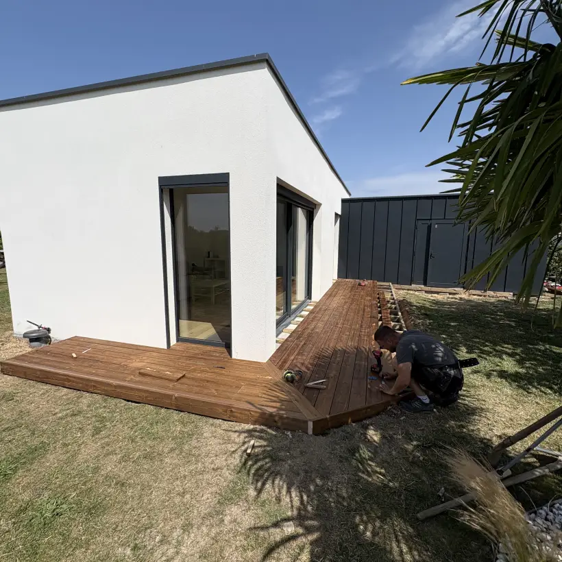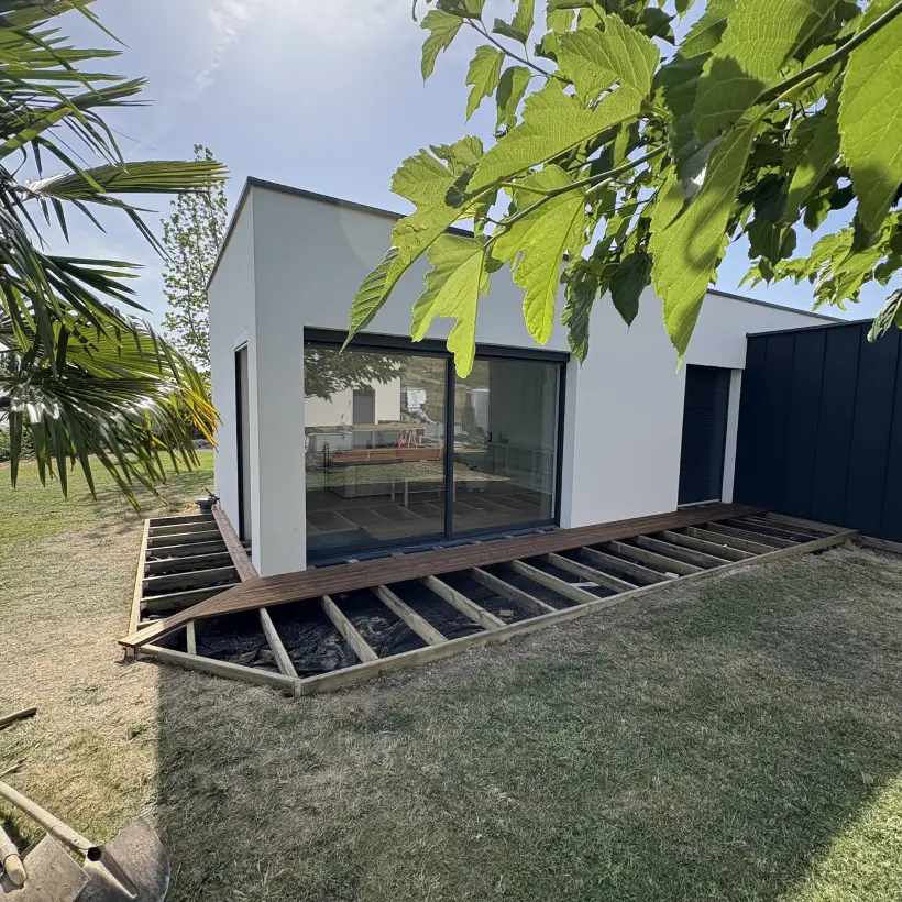 Les chantiers se présentent comme des réalisations uniques, où le bois est travaillé avec précision et ouverture créative. Les lignes peuvent rester classiques ou adopter des formes plus originales, mais toujours avec la même exigence : associer solidité, cohérence esthétique et adaptation aux besoins réels de chaque projet.